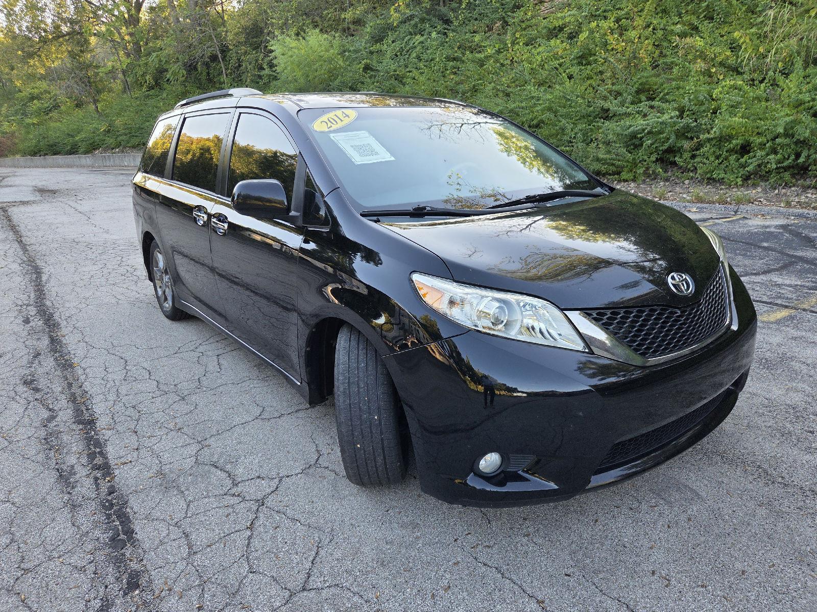 This 2014 Toyota Sienna SE has a Black exterior and Dark Charcoal interior color.
